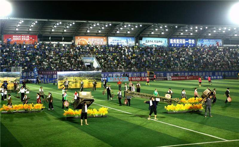 4月11日晚股票入门网,由湖南永州道县富塘街道五侯社区表演的农耕文化秀《稻·源》,走进2025湘超冠军永州队VS村超全国总冠军广东肇庆足球队“双冠”邀请赛现场,给观众带来了不一样的稻耕文化大餐。(杨阳 胡荣华)