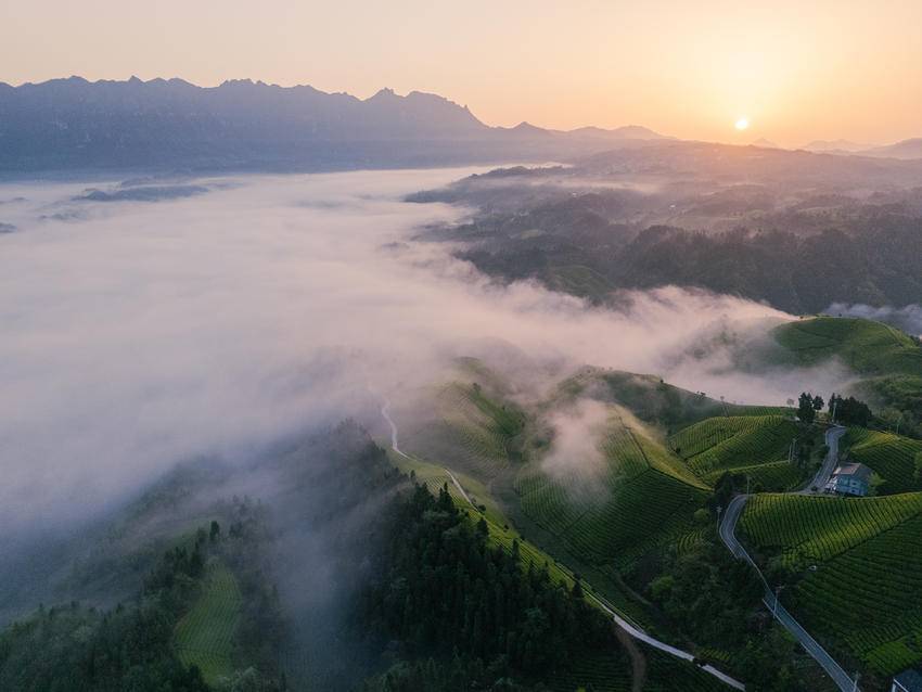 湖北日报客户端讯(通讯员覃涛)4月18日,在鹤峰县走马镇升子村木耳山茶园,随着一轮红日喷薄而出,白云在茶垄间涌动股票场外配资,绿浪翻滚、美不胜收。